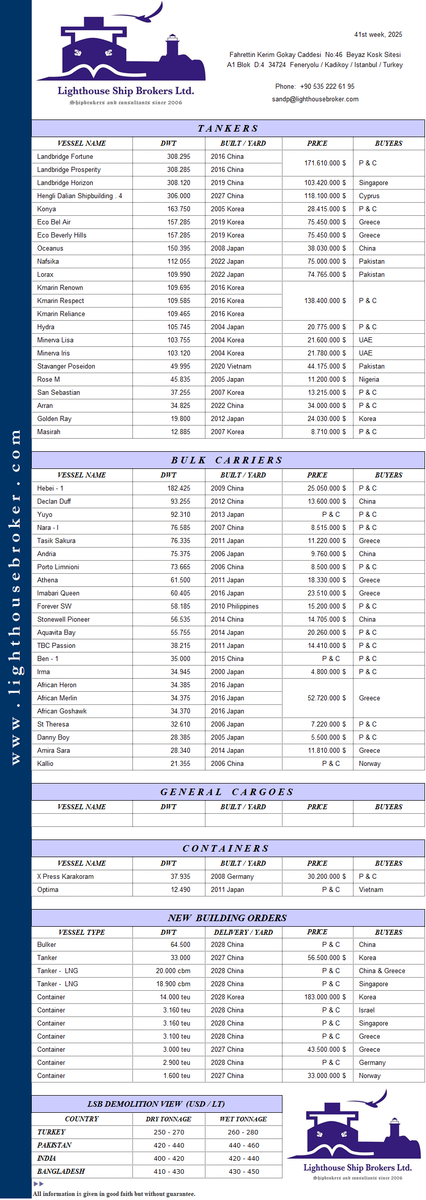 Copyright © 2006 - 2025 Lighthouse Ship Brokers Ltd.