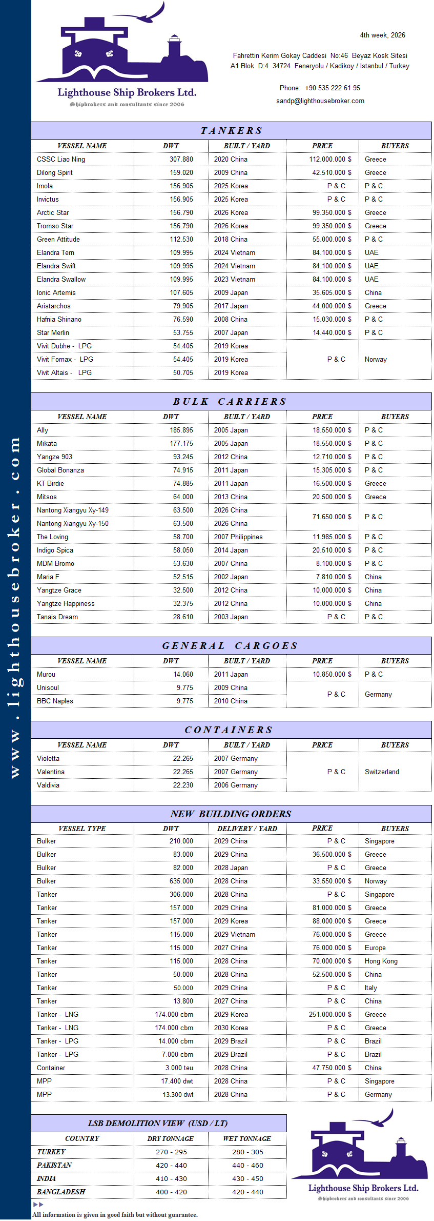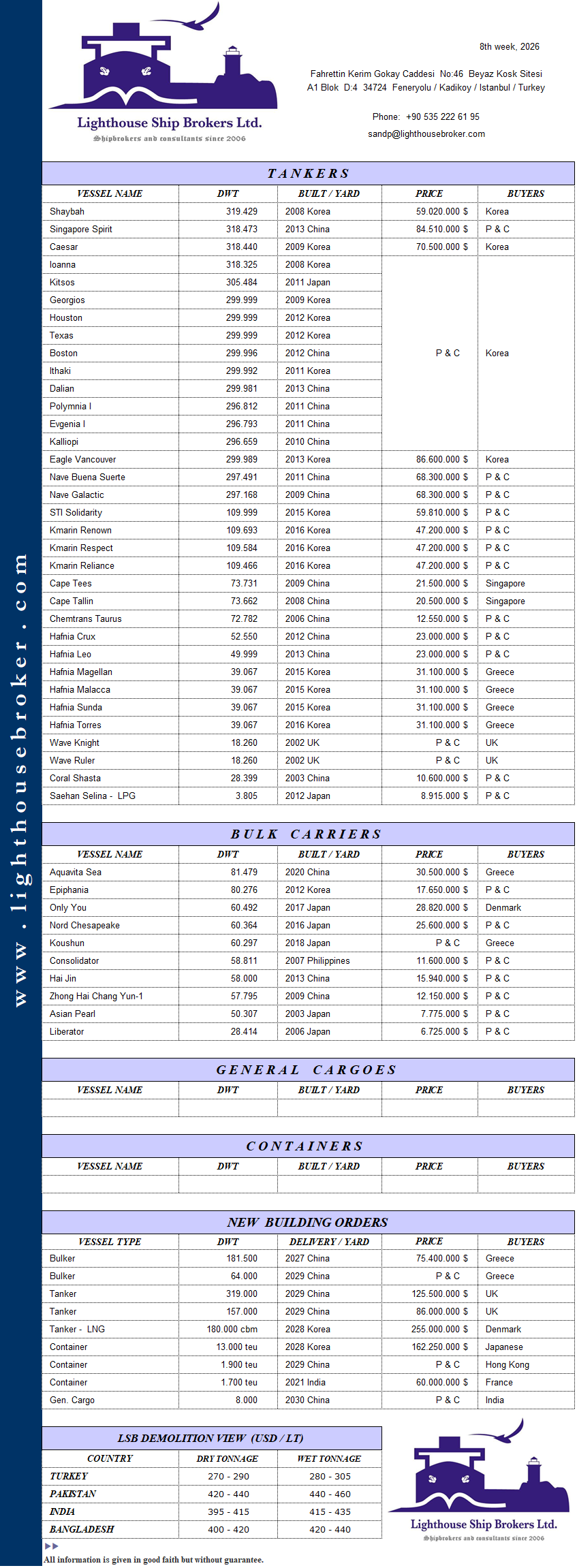 Copyright © 2006 - 2026 Lighthouse Ship Brokers Ltd.